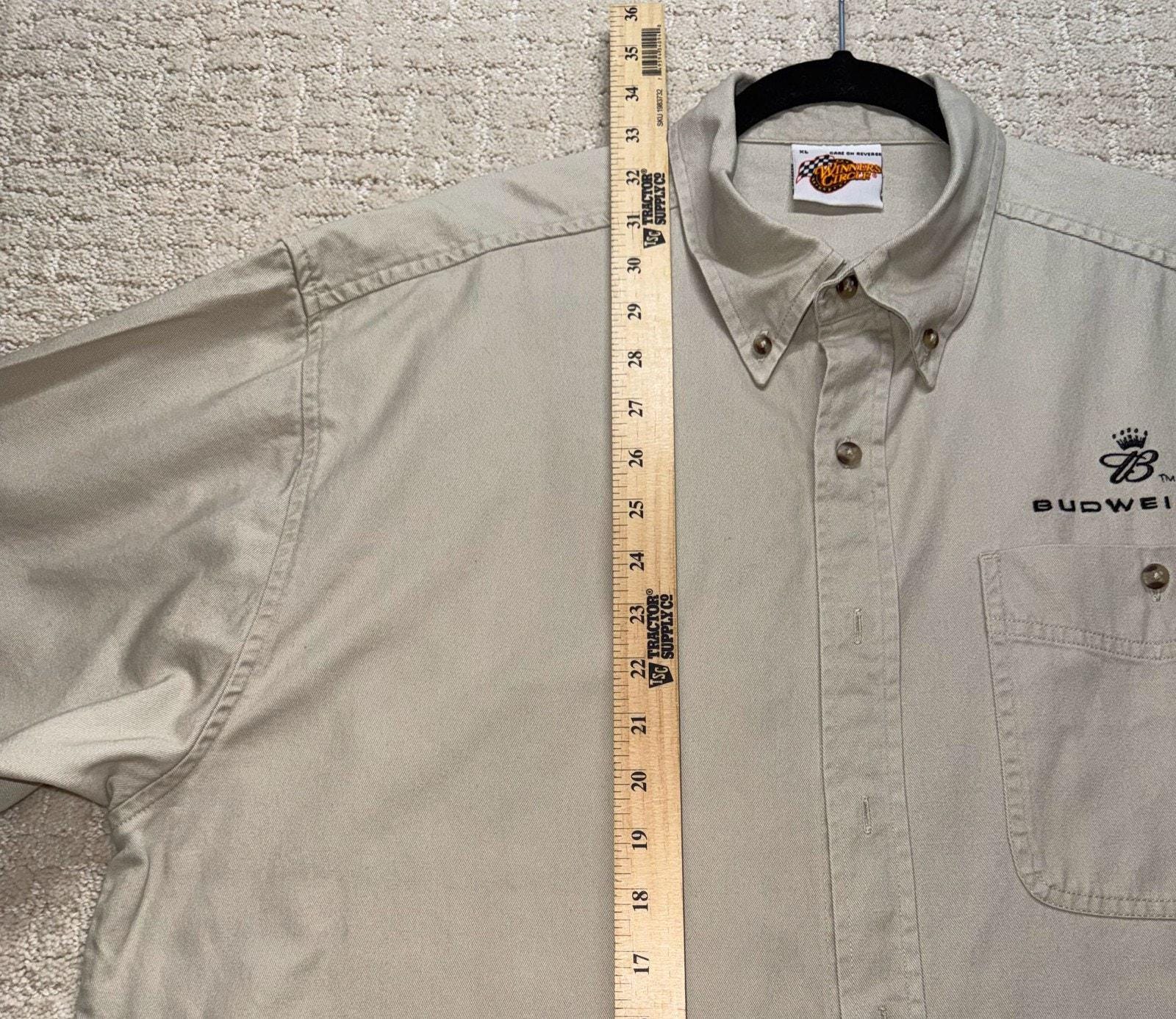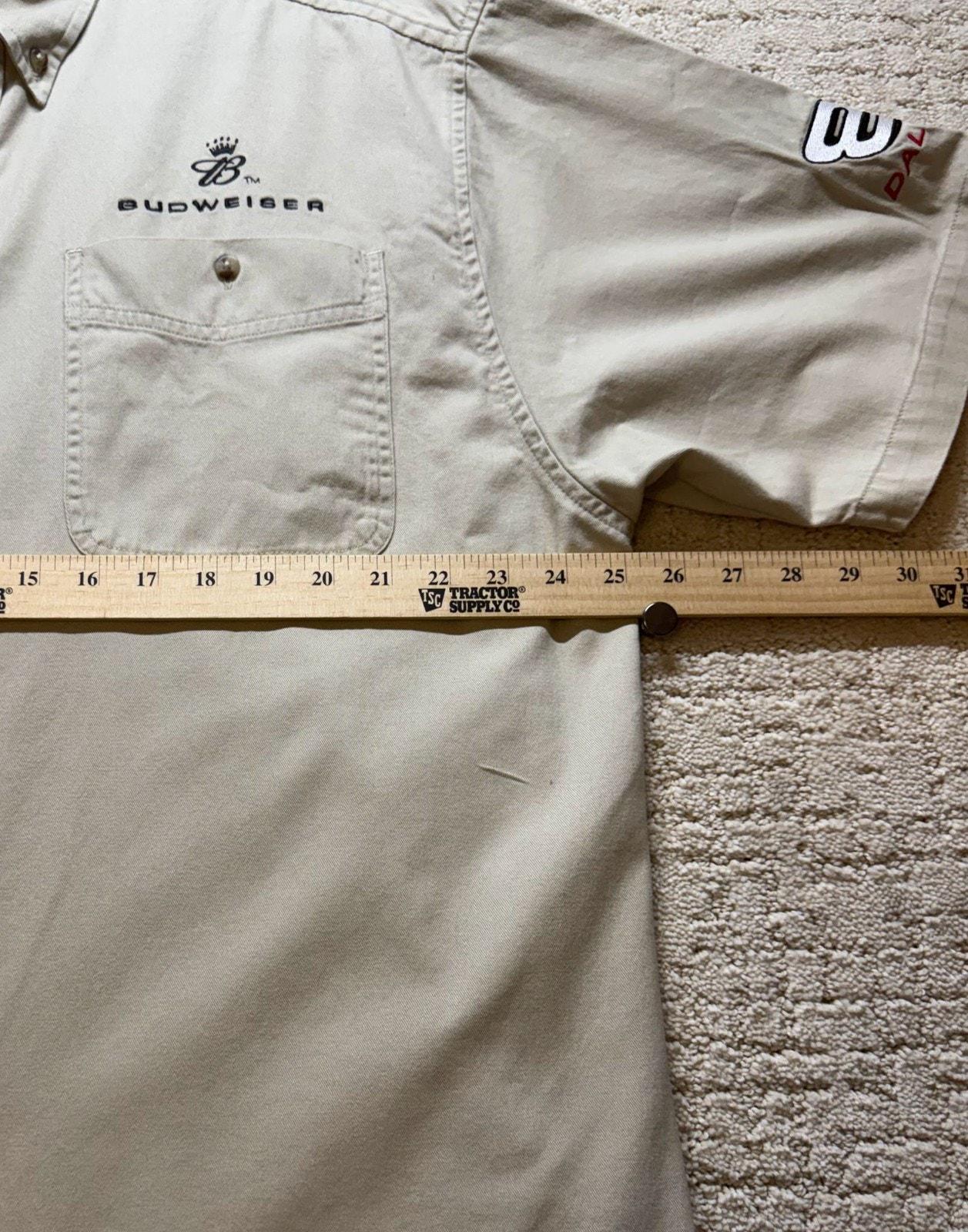 Budweiser Dale Jr Racing Short Sleeve Button Up Shirt XL Khaki Winners Circle