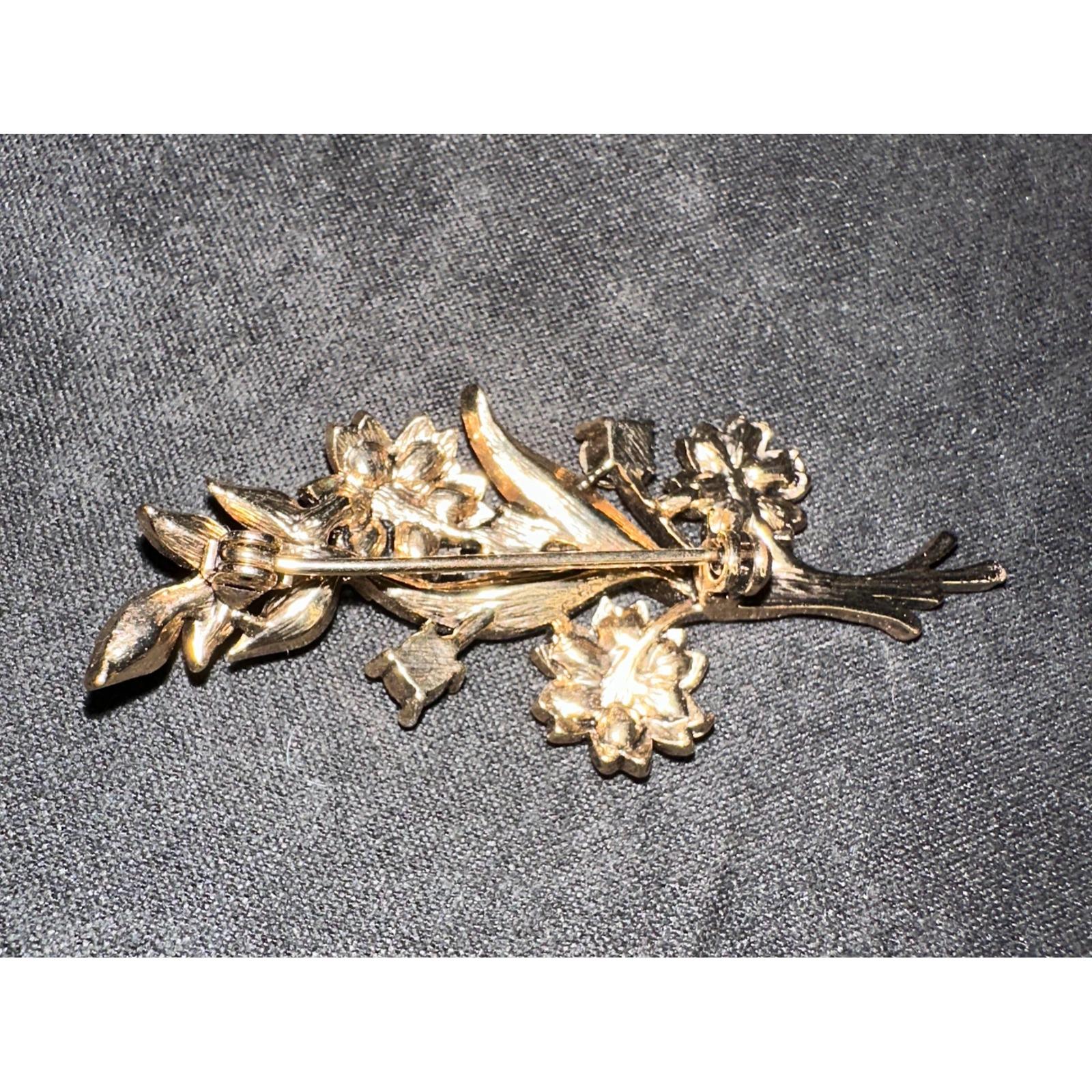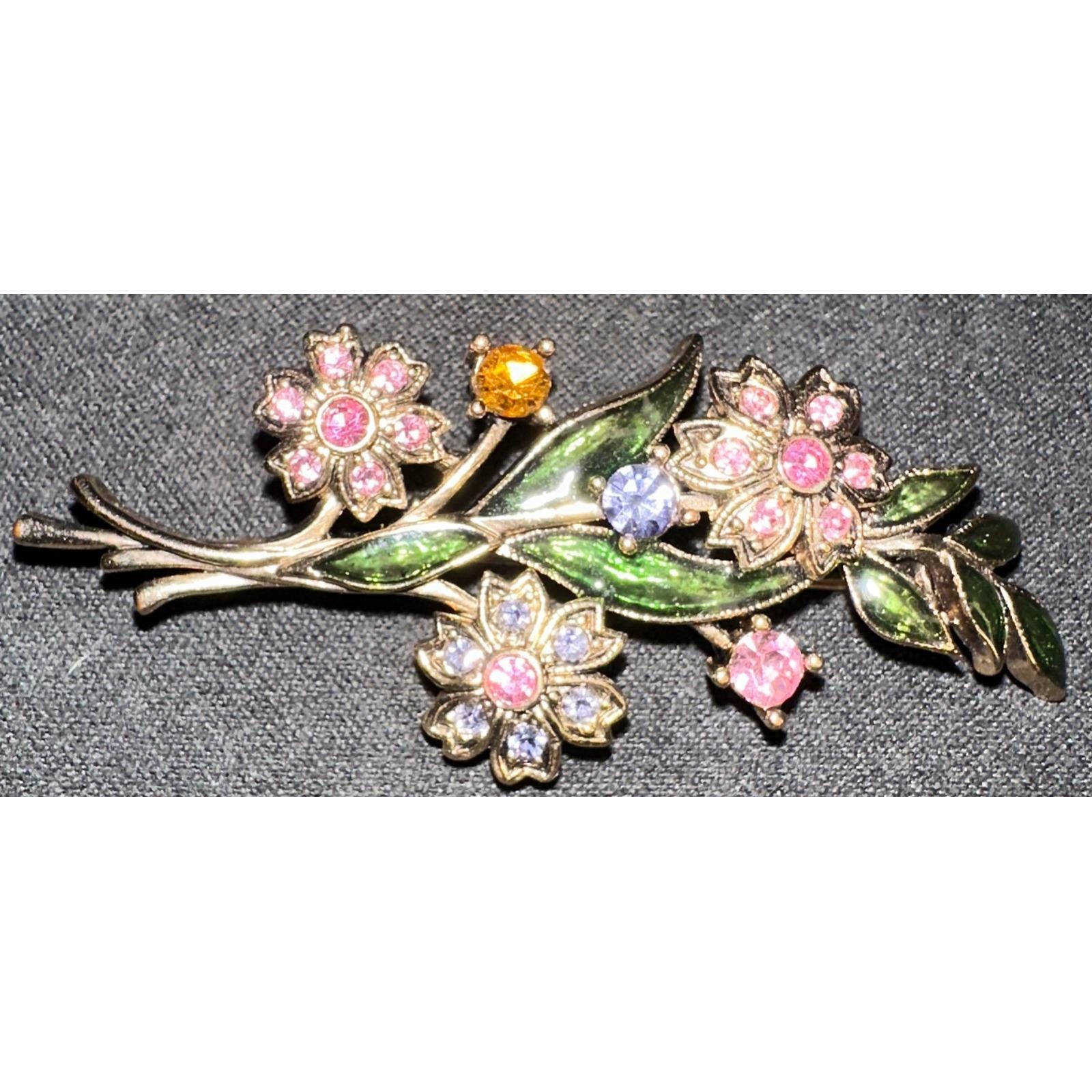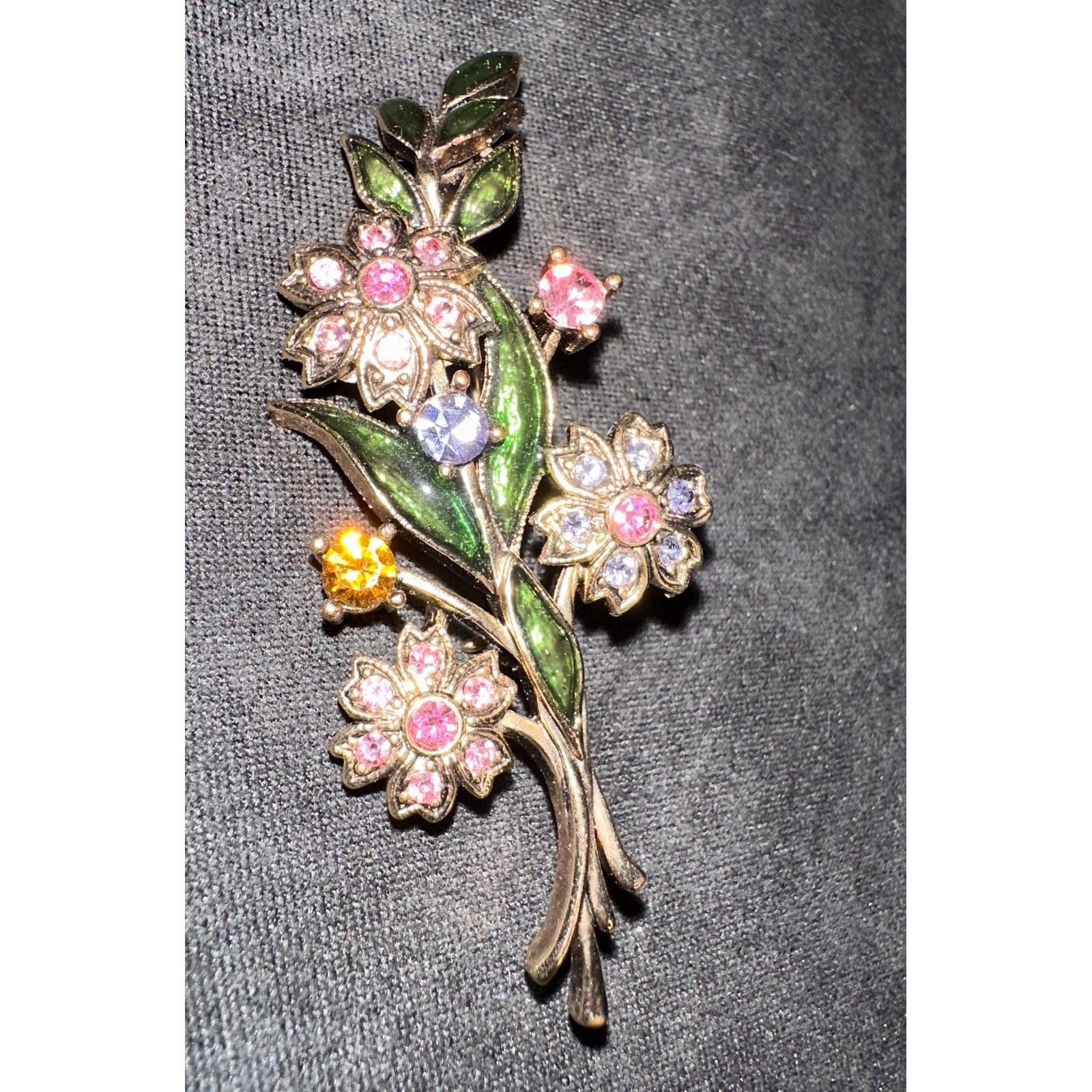 Vintage Floral Brooch Pin Womens OS Gold Pink Rhinestone Enamel