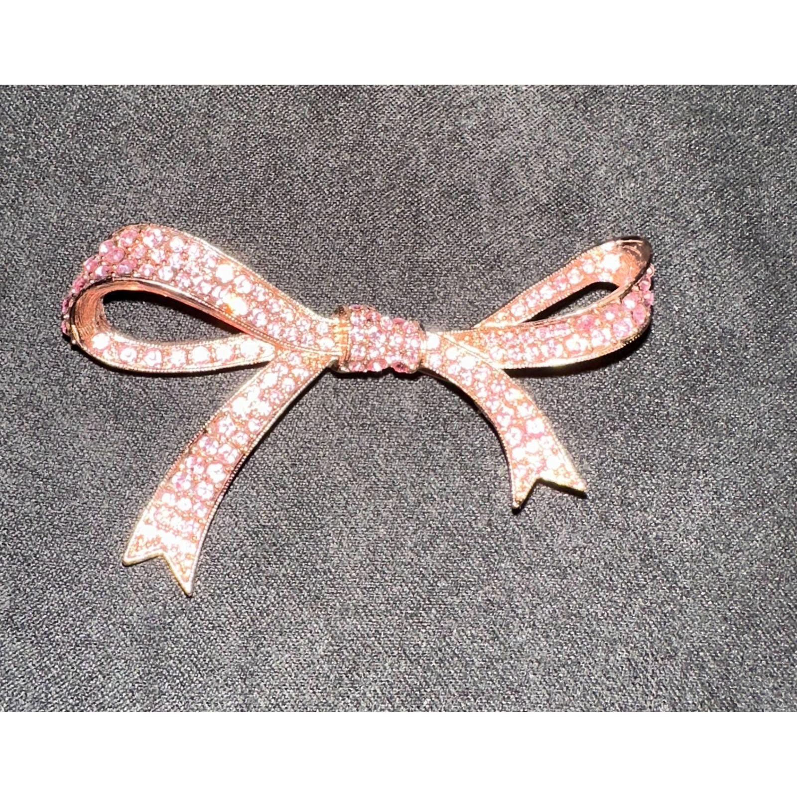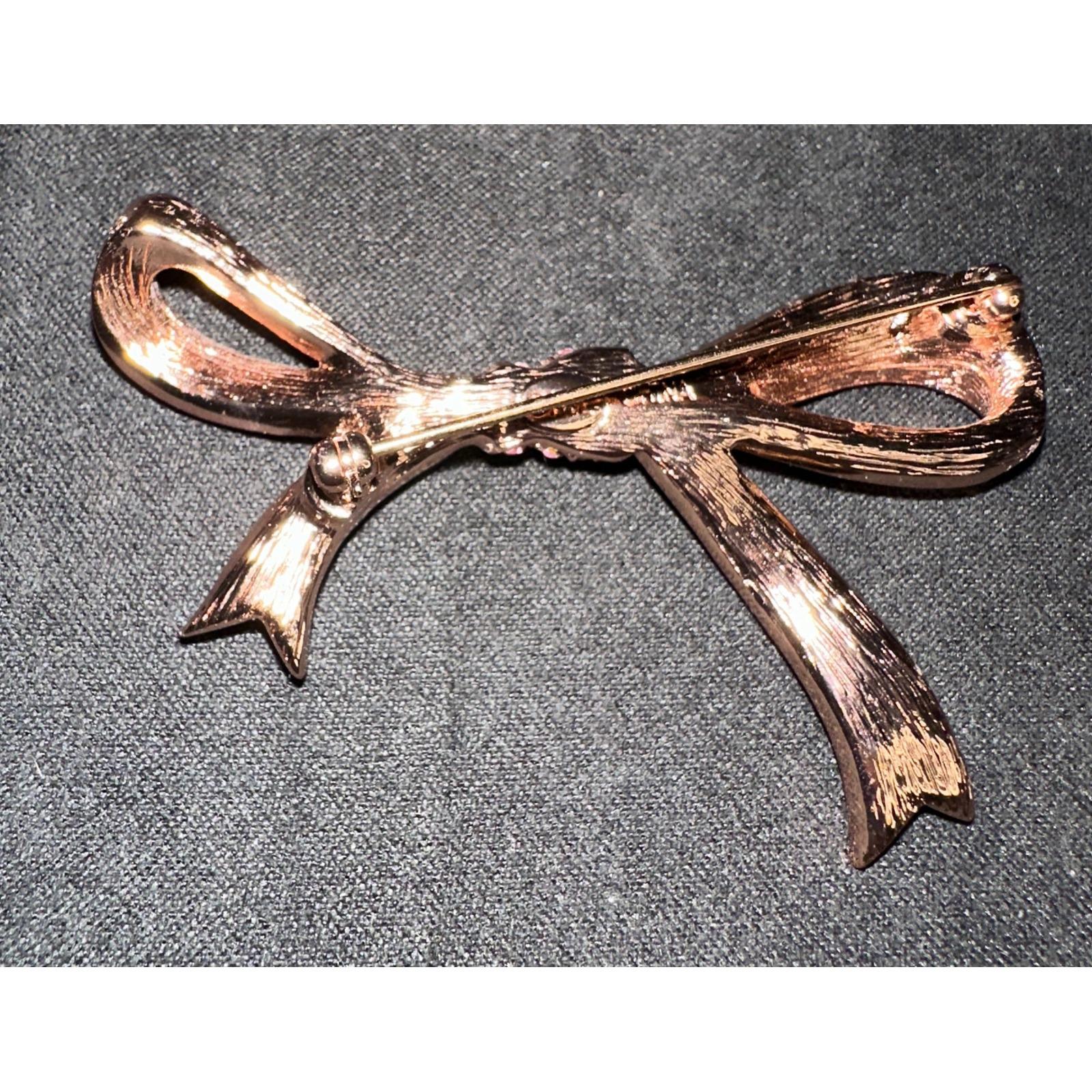 KJL Kenneth J Lane Bow Brooch Pin Women OS Pink Rhinestone Crystal Rose Gold