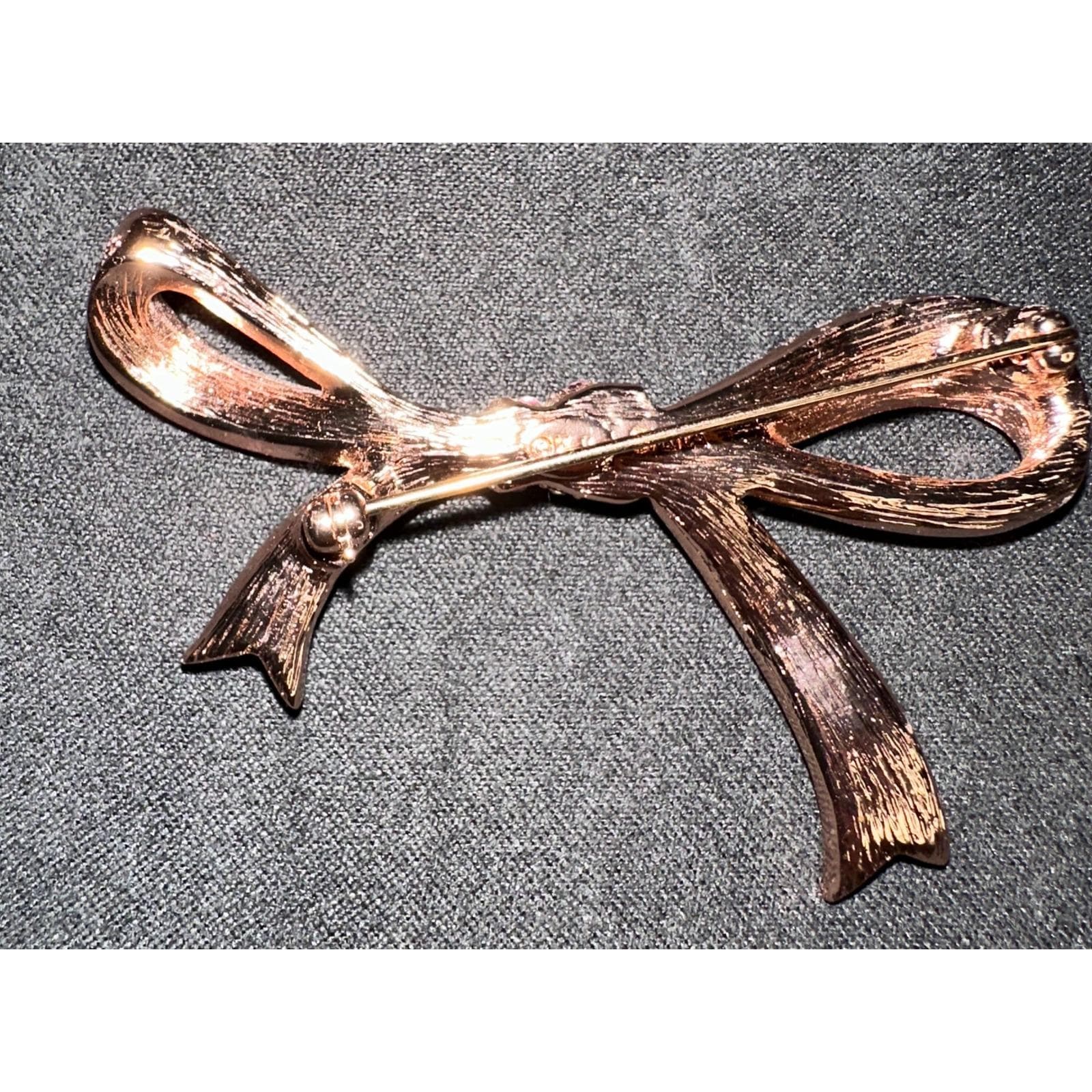 Vintage KJL Kenneth Jay Lane Bow Brooch Pin OS Pink Rhinestone Crystal Rose Gold