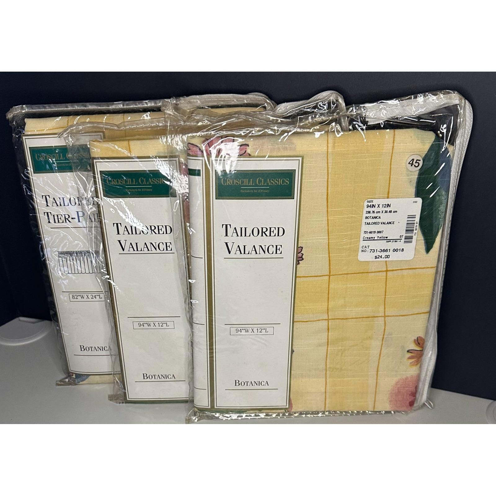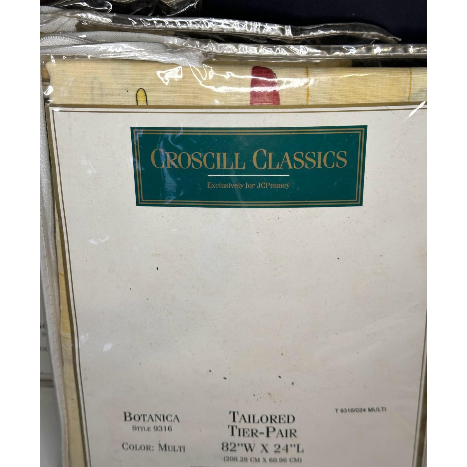 Vintage Croscill Botanica Valance & Tier Pair Set Yellow Multi NEW Floral Plaid