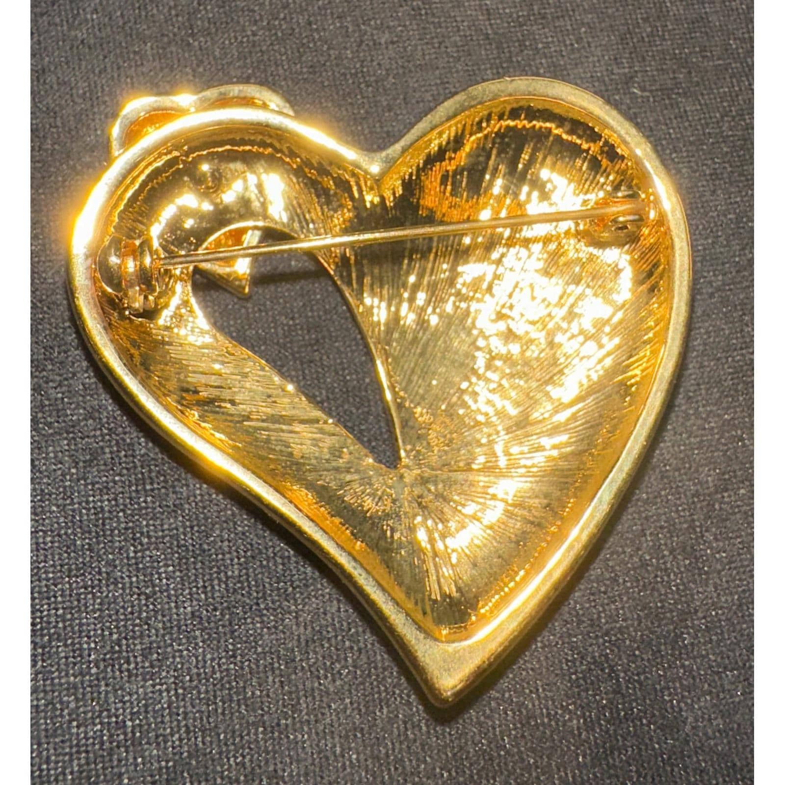 * Unbranded Heart Brooch Women OS Gold Tone Rhinestone Pave Crystal Statement Pin
