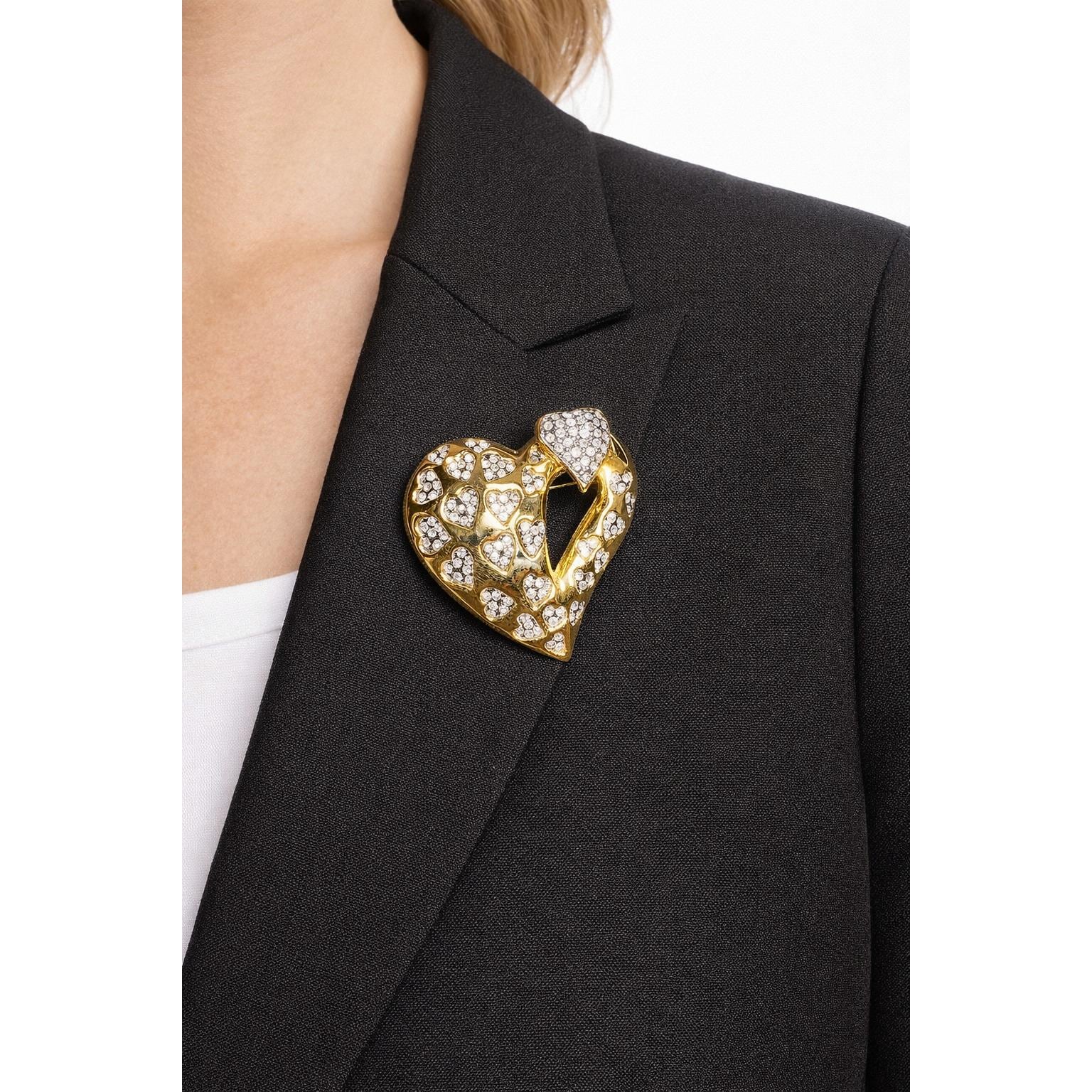Unbranded Heart Brooch Women OS Gold Tone Rhinestone Pave Crystal Statement Pin