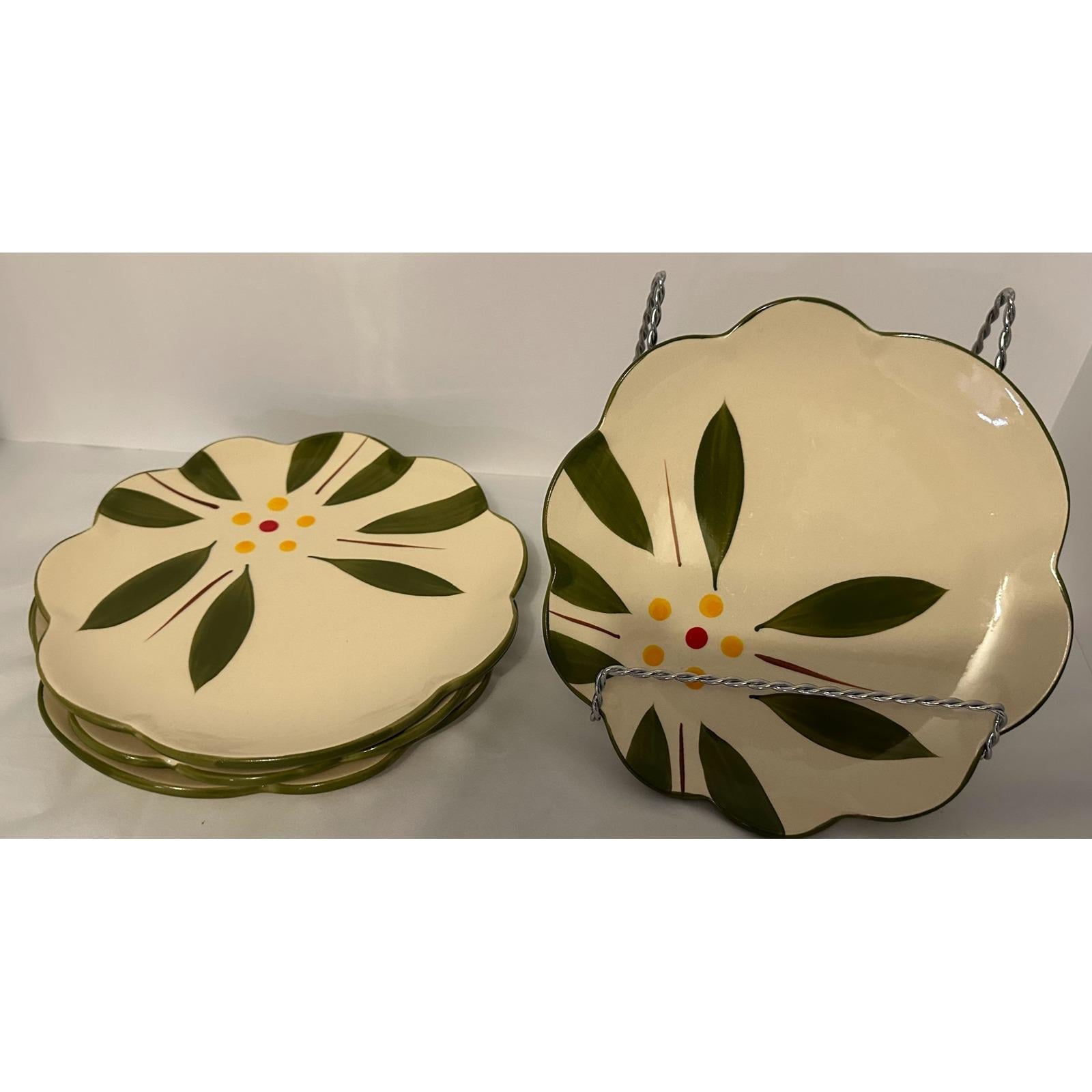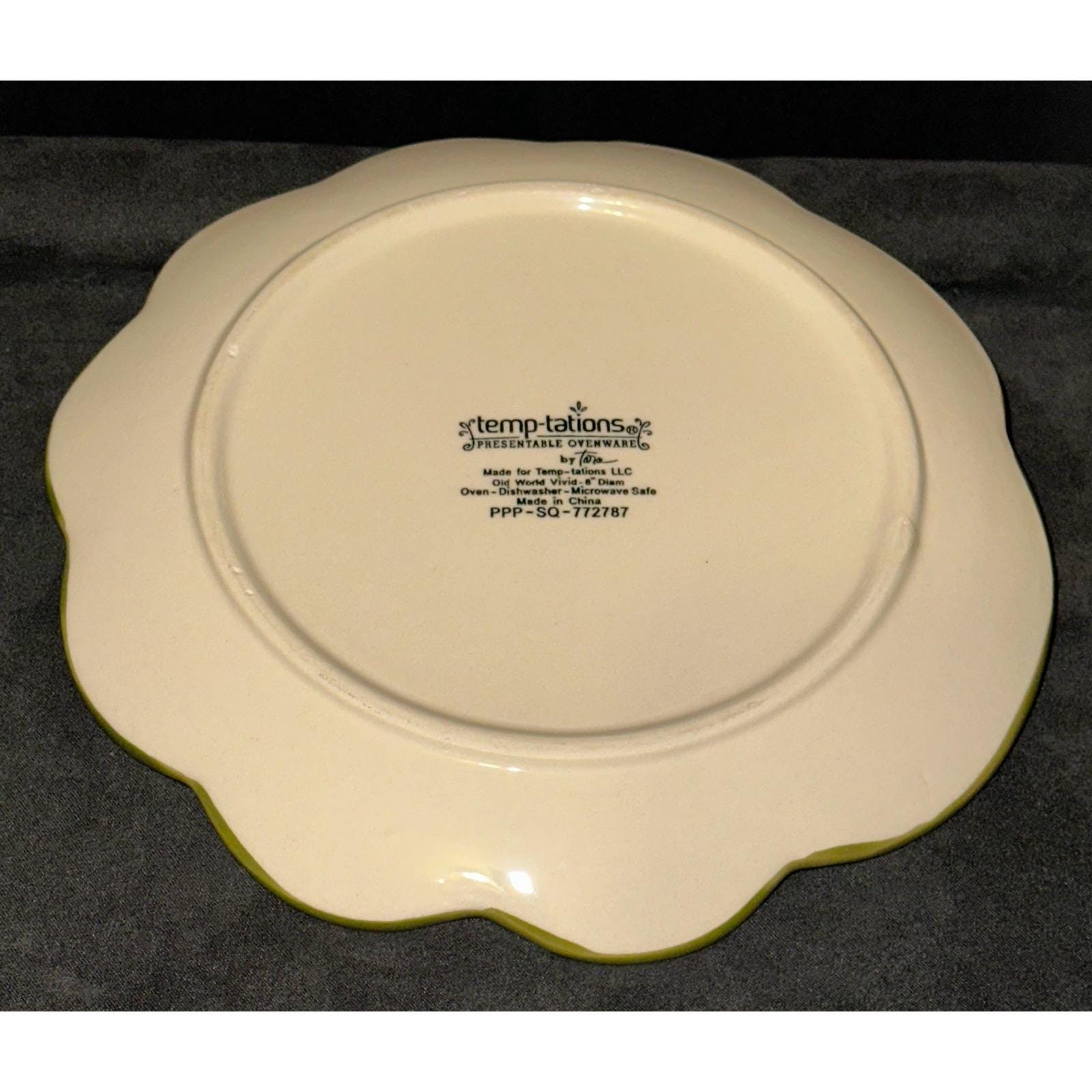 Temp-tations Salad Plates Set of 4 Cream Green Old World Vivid Flower Scalloped 8"