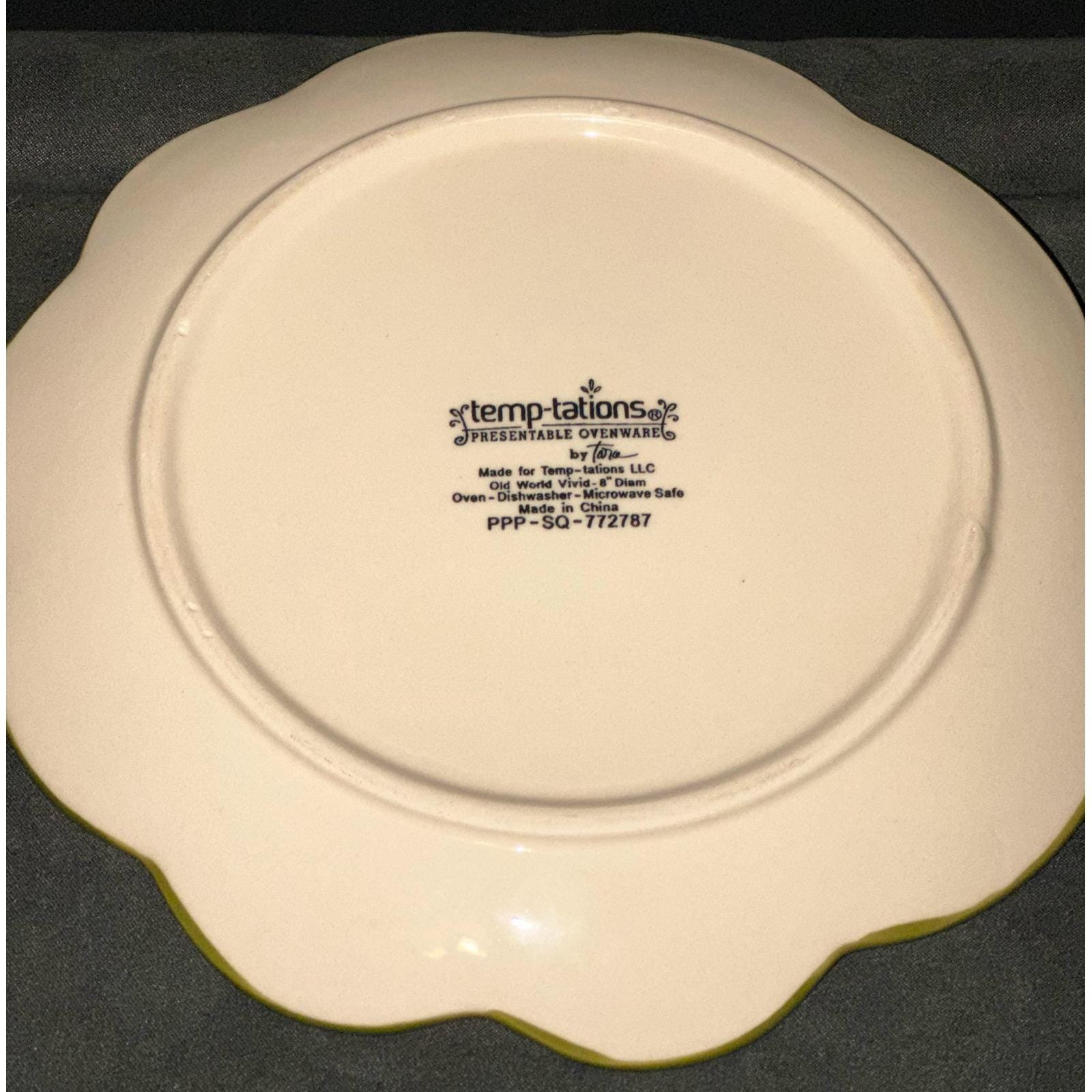 Temp-tations by Tara Salad Plates Set Cream Green Old World Flower Scalloped 8"